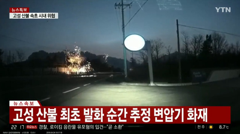 고성 산불 최초 발화 순간 추정 변압기 사진 본문